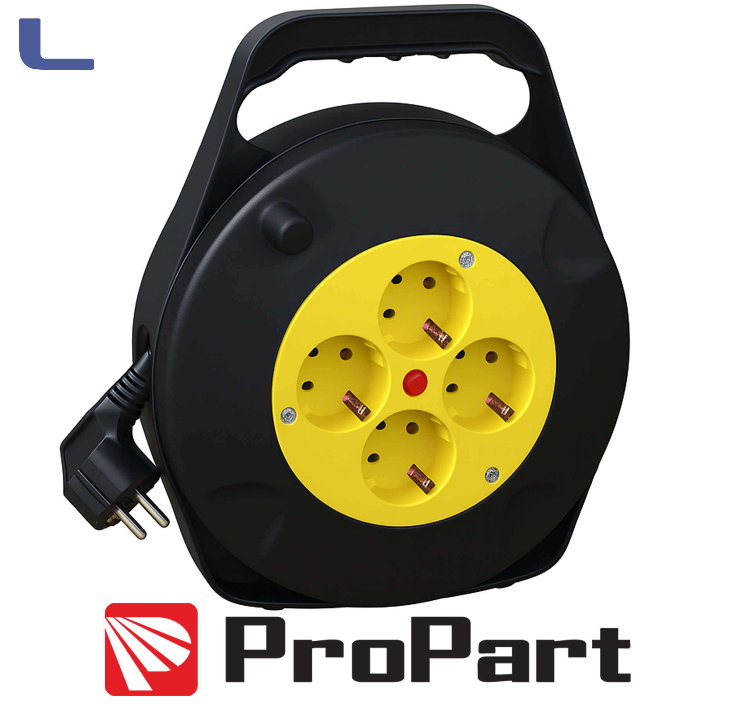Avvolgicavo 4 posti: 4 prese 16A Schuko con manico in plastica